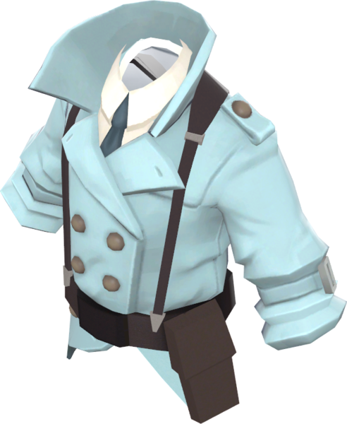 | current | 15:11, 27 July 2025 | 608 × 741 (358 KB) | Gabrielwoj (talk | contribs) | The lower-coat portion of this item is modelled just to be on the same width of the rest of the vest. I removed from the model to make the paint variants larger (zoomed in). | |
