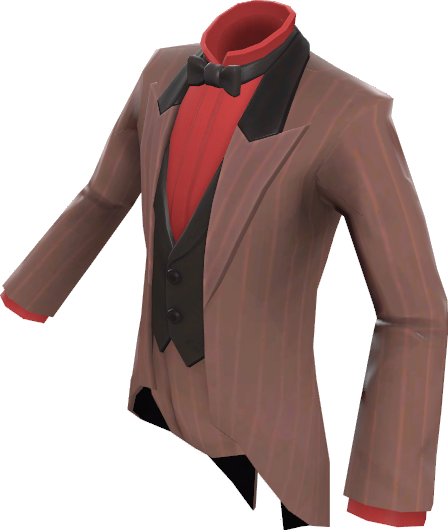 | current | 18:15, 13 December 2025 | 448 × 530 (176 KB) | Plutonium (talk | contribs) | == Summary == {{Model info | cosmetic = Black Tie Affair | paint = Team Spirit }} == Licensing == {{ScreenshotTF2}} Category:Painted item images |