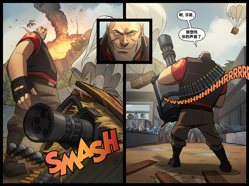 | This is original artwork for the game Team Fortress 2. The copyright for it is held by Valve Corporation, who created the software. |