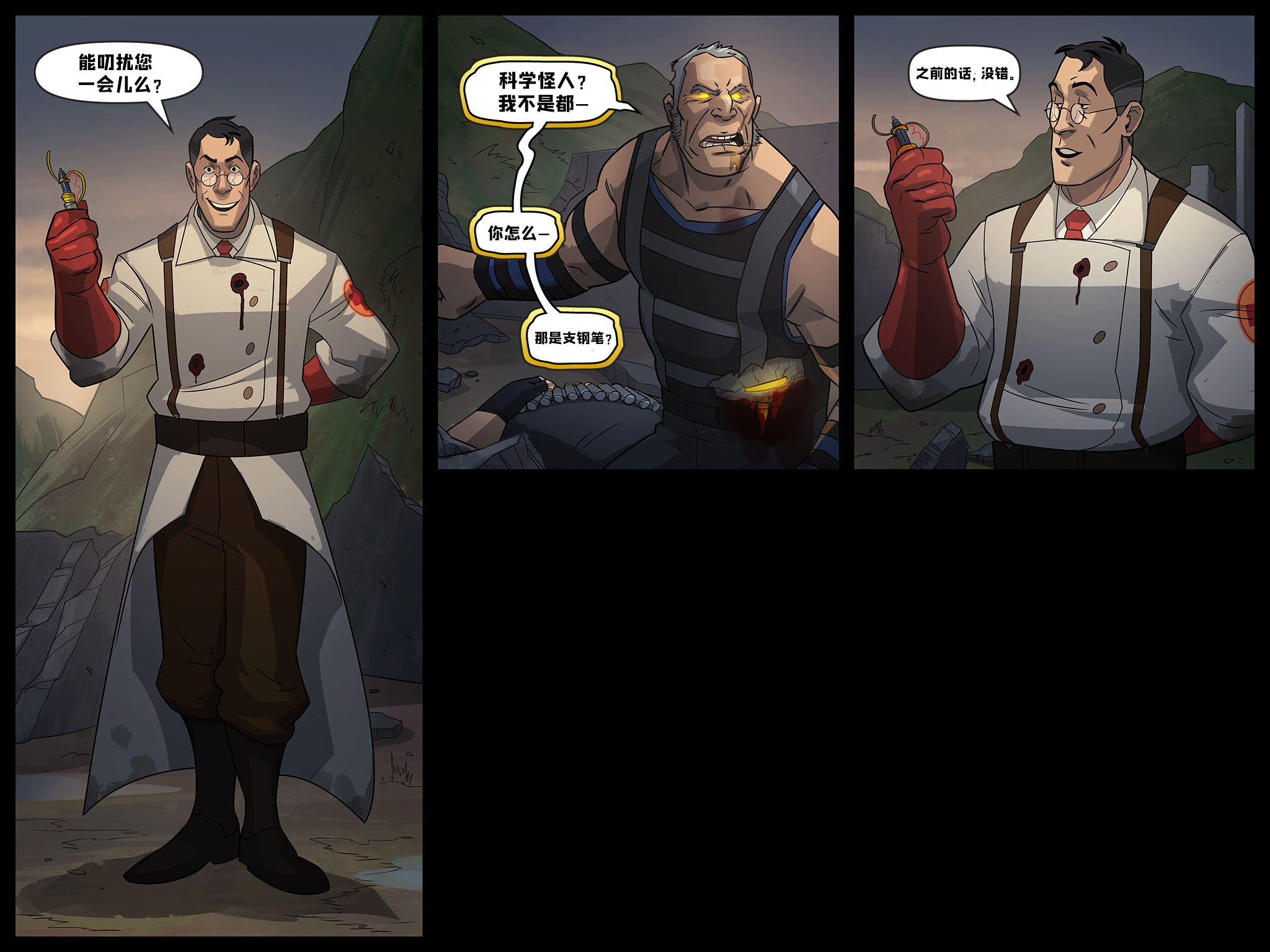 | This is original artwork for the game Team Fortress 2. The copyright for it is held by Valve Corporation, who created the software. |