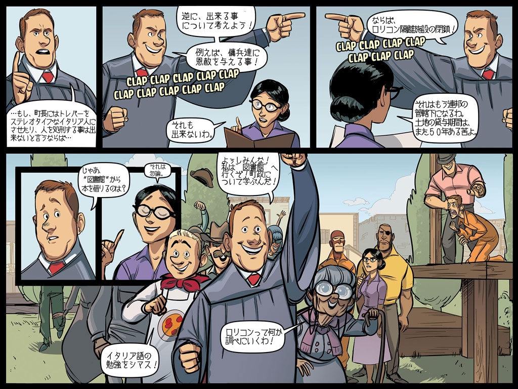 | 05:13, 4 April 2014 | 1,024 × 768 (609 KB) | Kii (talk | contribs) | == Summary == {{Page nav|Unhappyreturns ja 56.jpg|Unhappyreturns ja 58.jpg}} Translation by [http://steamcommunity.com/id/Hidemaru_kyu Hidemaru] Image editing by Kii Category:Comics/ja == Licensing == {{ArtworkTF2}} |