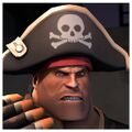 The Mann-O-War is a community-created cosmetic item for the Heavy. It's a dark team-colored bicorne with a golden trim featuring a skull with crossed bones on the front, worn over a team-colored headband.