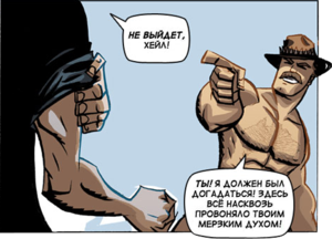 - Сакстон Хейл (из Видео Пламенные джунгли) делит актёра озвучивания (Джейби Бланка) с другим накаченным мужчиной с великолепными усами и голой грудью, Браумом из League of Legends.